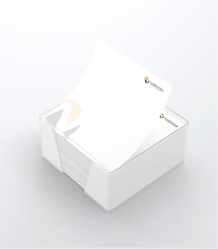 - Material – 500 sheets 3.7″ x 3.7″ block pads with full logo printing on 80gsm bond paper