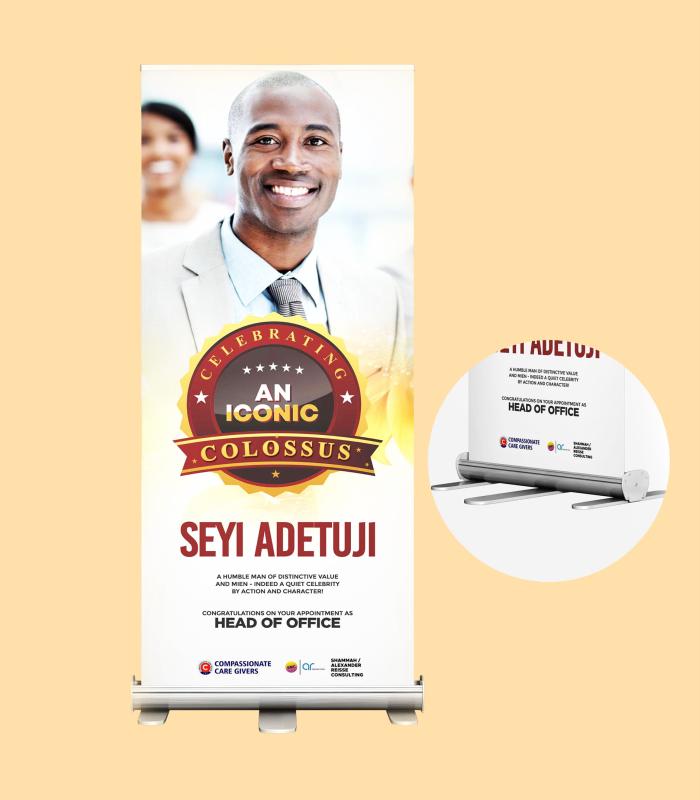 - Finishing – Printing and mounted on Rollup Banner stand